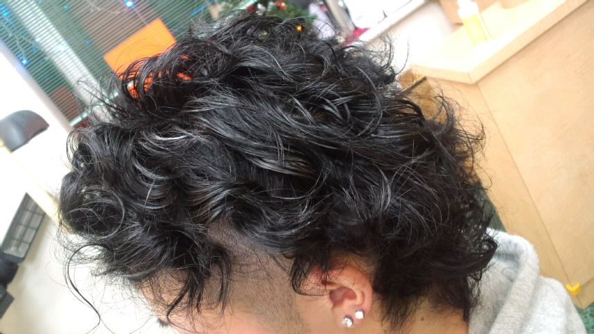 K君は ツイストパーマ で 文字通り ツイストしたまま パーマを あてていきます洗いざらしでOKです