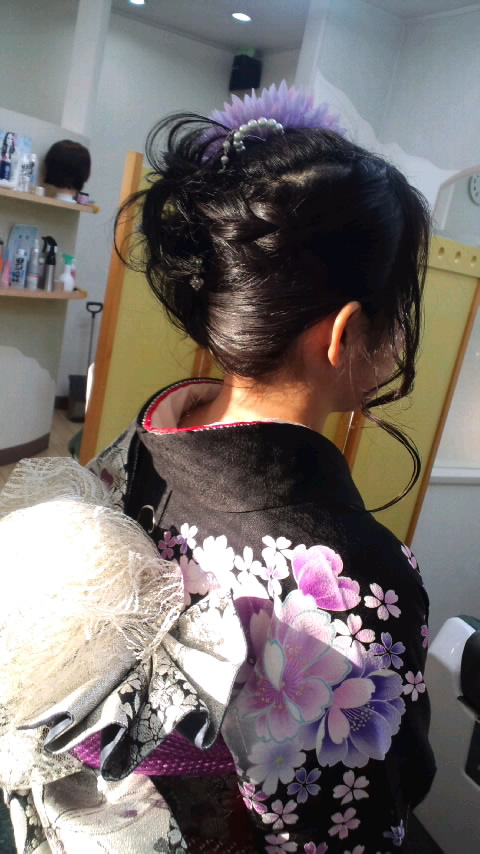 着物すごく お似合いでした アップの ほうは 少しアレンジして時間が、かかりましたが 可愛く まとまりました。