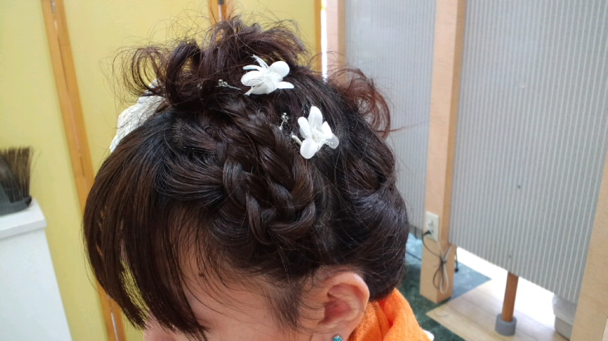 と カチュウシャみたいな 編み込みです