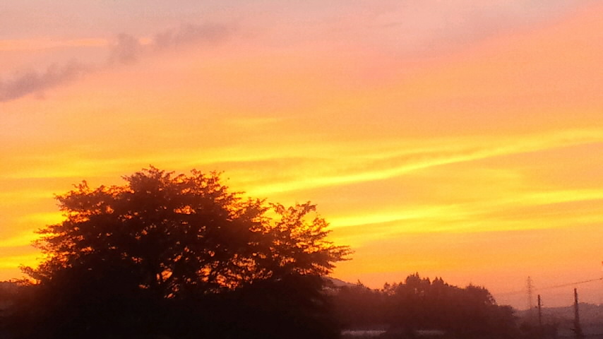 東京では 帰りの電車の 中から 夕焼け空を 見ていたような気がします。