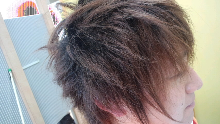 さてさて 昨日の お客さま Mちゃん 仕事で 忙しいみたいです。 予約頂きました。毛先をレザーで 鋭さを 出しました。