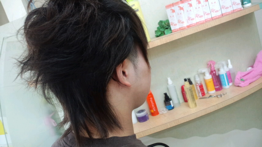髪の毛の 多い Tちゃんは かなり セニングを して 軽さをだしました。