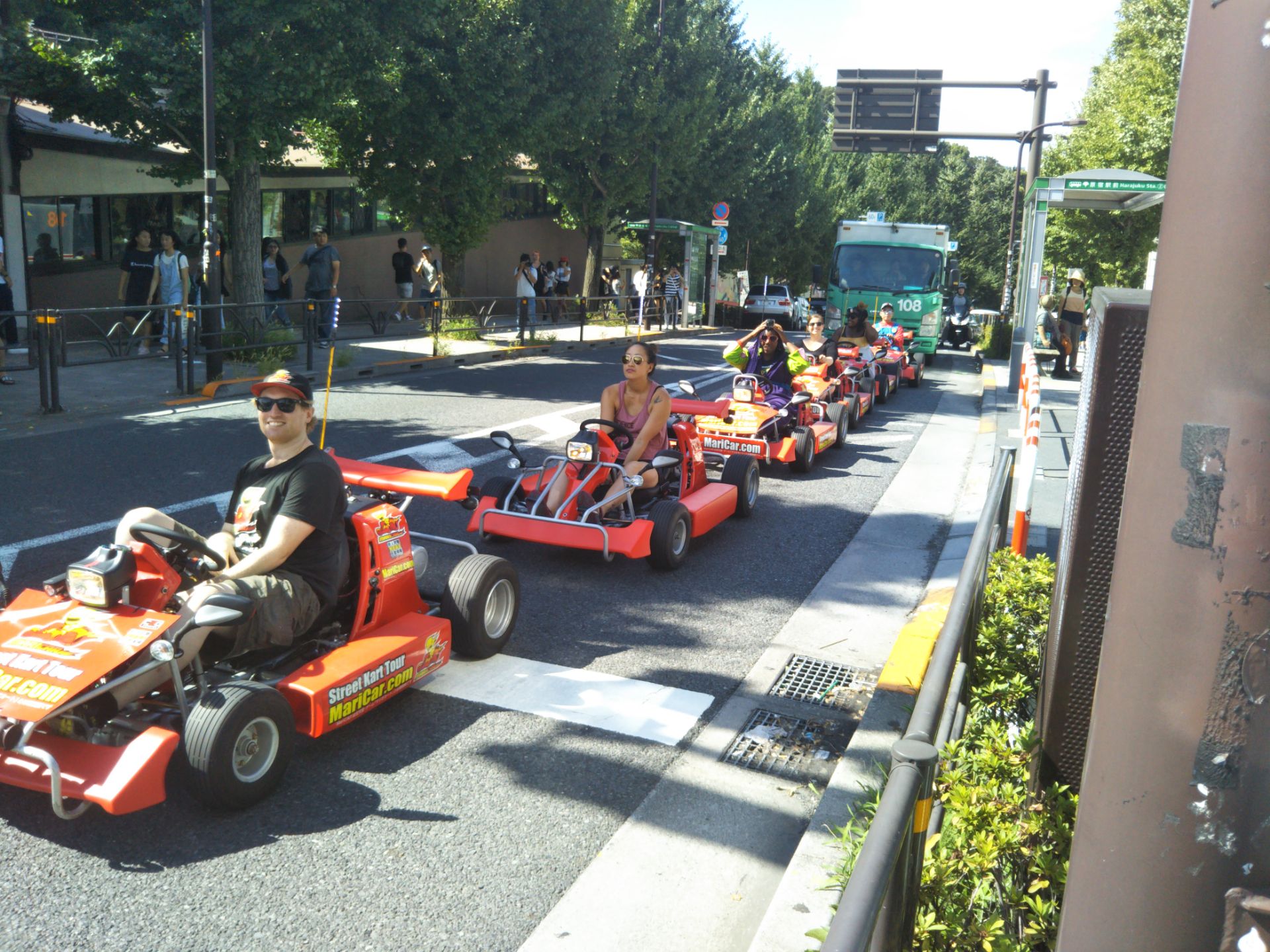 原宿駅前を 信号待ちしてる 時に 外人さん マリオ軍団 手を 振って !